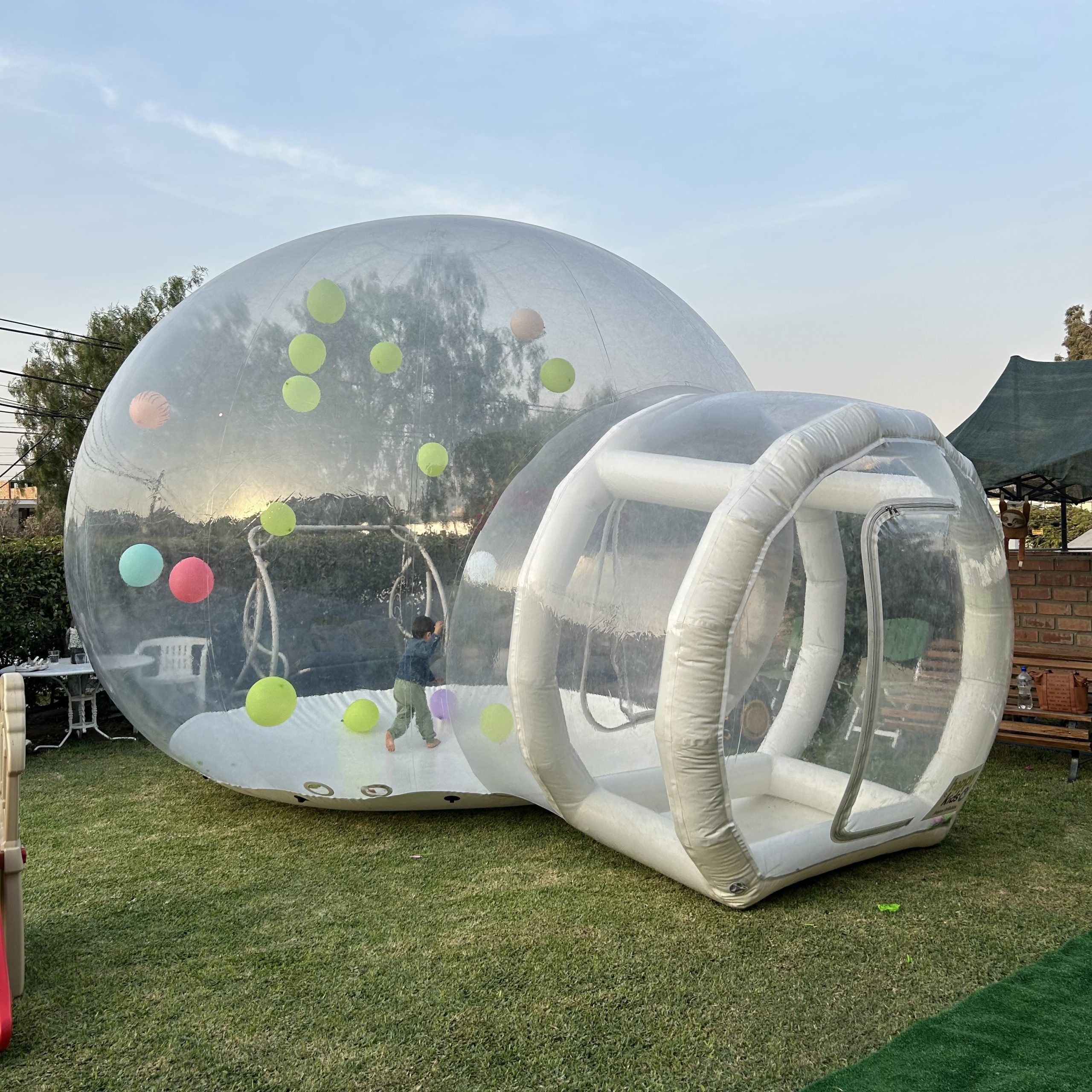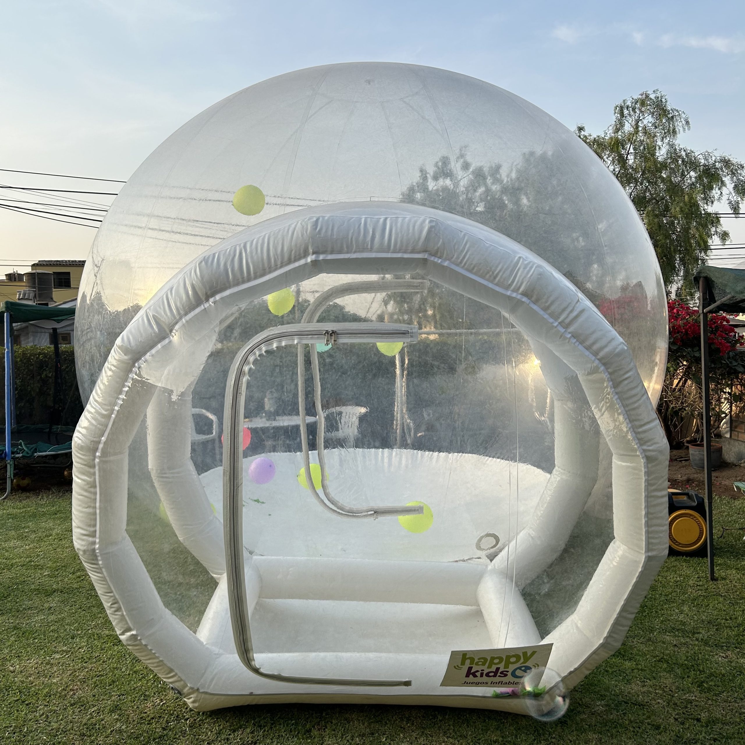 ¡Diversión asegurada para grandes y chicos! Con la Casa de Burbujas, los niños podrán jugar entre una lluvia de globos que se mueven con el aire, creando un ambiente mágico y lleno de color. Ideal para cualquier tipo de evento familiar o infantil.